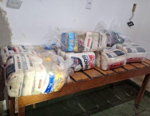 Em outro ambiente da casa, foram encontradas 11 cestas básicas e nove fardos contendo produtos de limpeza, materiais que, segundo as informações obtidas, estariam vinculados ao grupo criminoso.